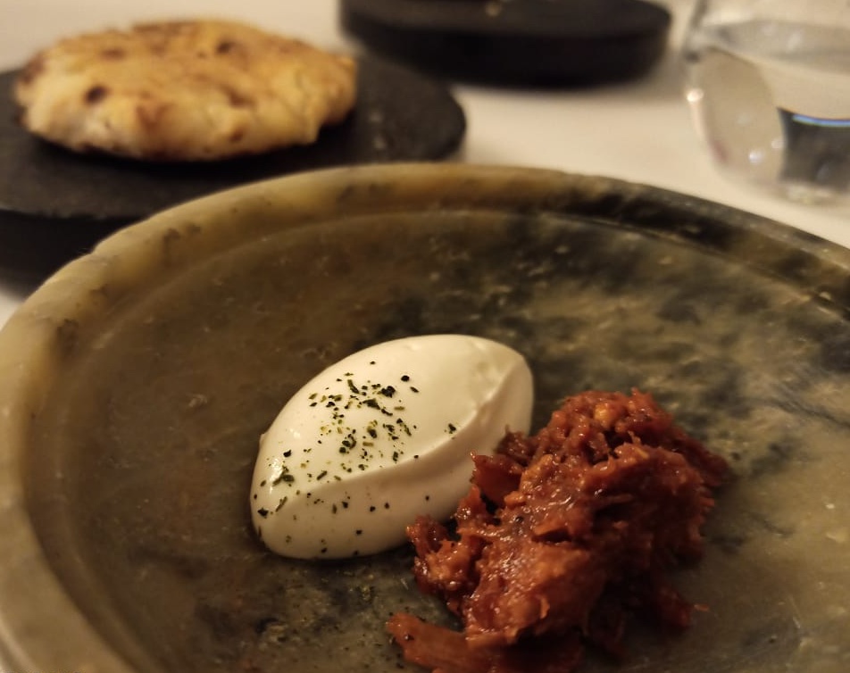 The pork pickle adds a sharp spice to balance the smooth tang of the yoghurt. Eat the two together and you’ve got the intensity of the pork pickle mellowed out slightly by the yoghurt. Add to that the fermented flatbread and you create an explosion of flavours in your mouth. With such an intensity of flavours, the small portion size makes perfect sense.