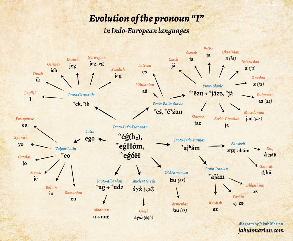 Like species, most languages originate from older languages, and their vocabulary is based on both the parent language as well as the multiple languages it encounters during its evolution. Cognates refer to words in related languages, originating from a common source, which undergo changes over time based on the quirks of the individual languages. For example, the English “milk”, German “milch”, and the Dutch “melk”, all originate from a common Proto-Germanic ancestor. Similarly, the Spanish “leche”, Italian “latte”, and French “lait”, all originate from a common Latin ancestor. Cognates help linguists identify which languages are more closely related to each other, and even trace family trees of languages, one of the most popular being the Proto-Indo-European family tree, which is believed to have spawned a huge number of languages in Eurasia.