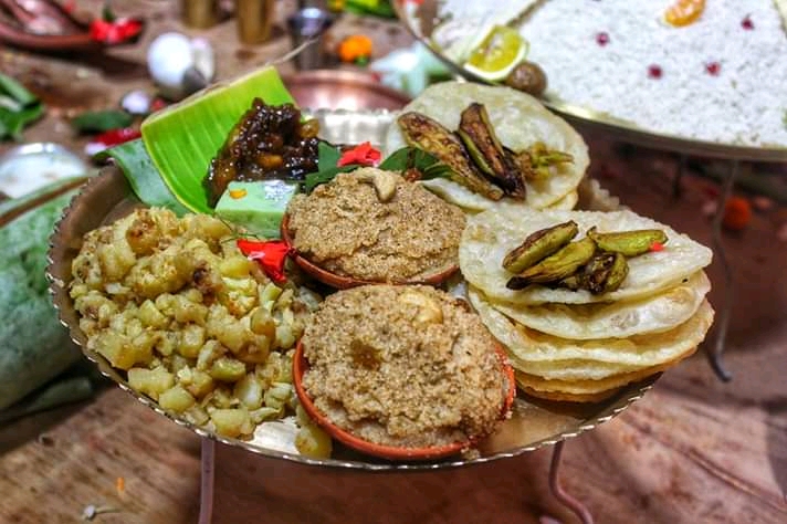 The radhaballavi is stuffed with a lentil mixture, usually kalai or biulir dal, called urad dal elsewhere in the country. It is a staple of the biyebari feast, where it is served alongside a rich aloor dom or a North Indian style chana masala. A fried flatbread with a spicy accompaniment comprises the first course in any classic, old-school biyebari feast in Bengal. Sometimes, the radhaballavi may be replaced by a naanpuri, and if you’re lucky, you’ll be served koraishutir kochuri.