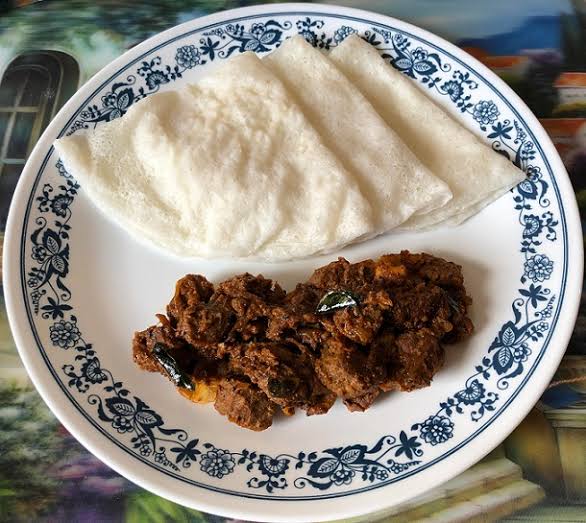 Beef Sukka with Neer Dosa (Courtesy: Crystal’s Recipes)